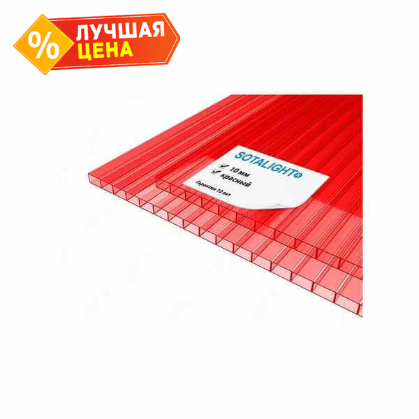 Сотовый поликарбонат 10 мм SOTALIGHT красный 2100х6000 мм