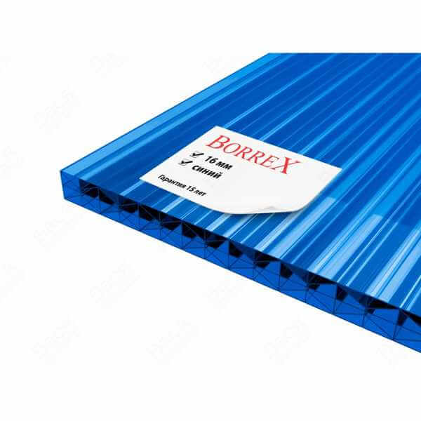 Сотовый поликарбонат 16 мм BORREX синий 2100х12000 мм