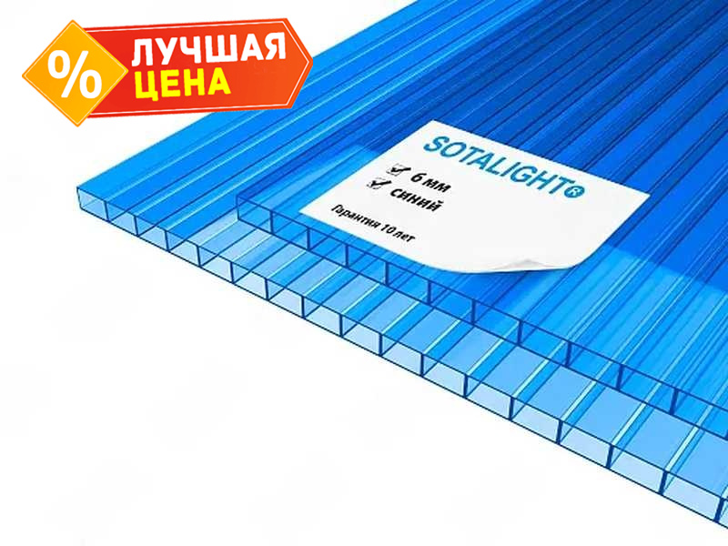 Сотовый поликарбонат 6 мм SOTALIGHT синего цвета размером 2100х12000 мм - это прочный и легкий материал, который отлично подходит для использования в различных строительных и дизайнерских проектах. Поликарбонат обладает высокой прочностью и устойчивостью к воздействию внешних факторов, что делает его идеальным выбором для создания крыш, навесов, ограждений и других конструкций.