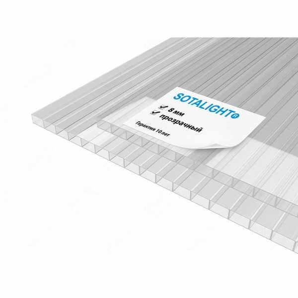 Сотовый поликарбонат 8 мм Соталайт прозрачный 2100х6000 мм